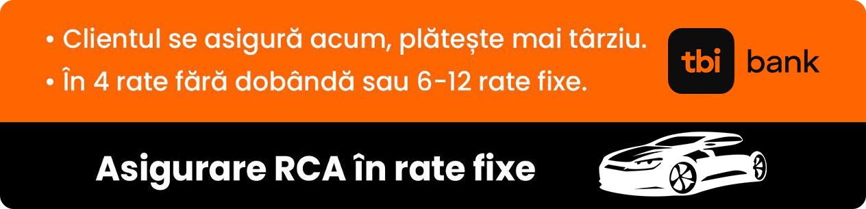 Pentru a încheia o asigurare RCA în rate cu credit TBI Bank ai posiblitatea sa faci totul online, direct pe site-ul de mai jos. Pentru inceput, intra pe butonul de mai jos unde scrie calculeaza RCA, adaugi toate datele masinii tale si alege oferta RCA dorita. Dupa, adaugi in cos asigurarea si mergi pana la metoda de plata.